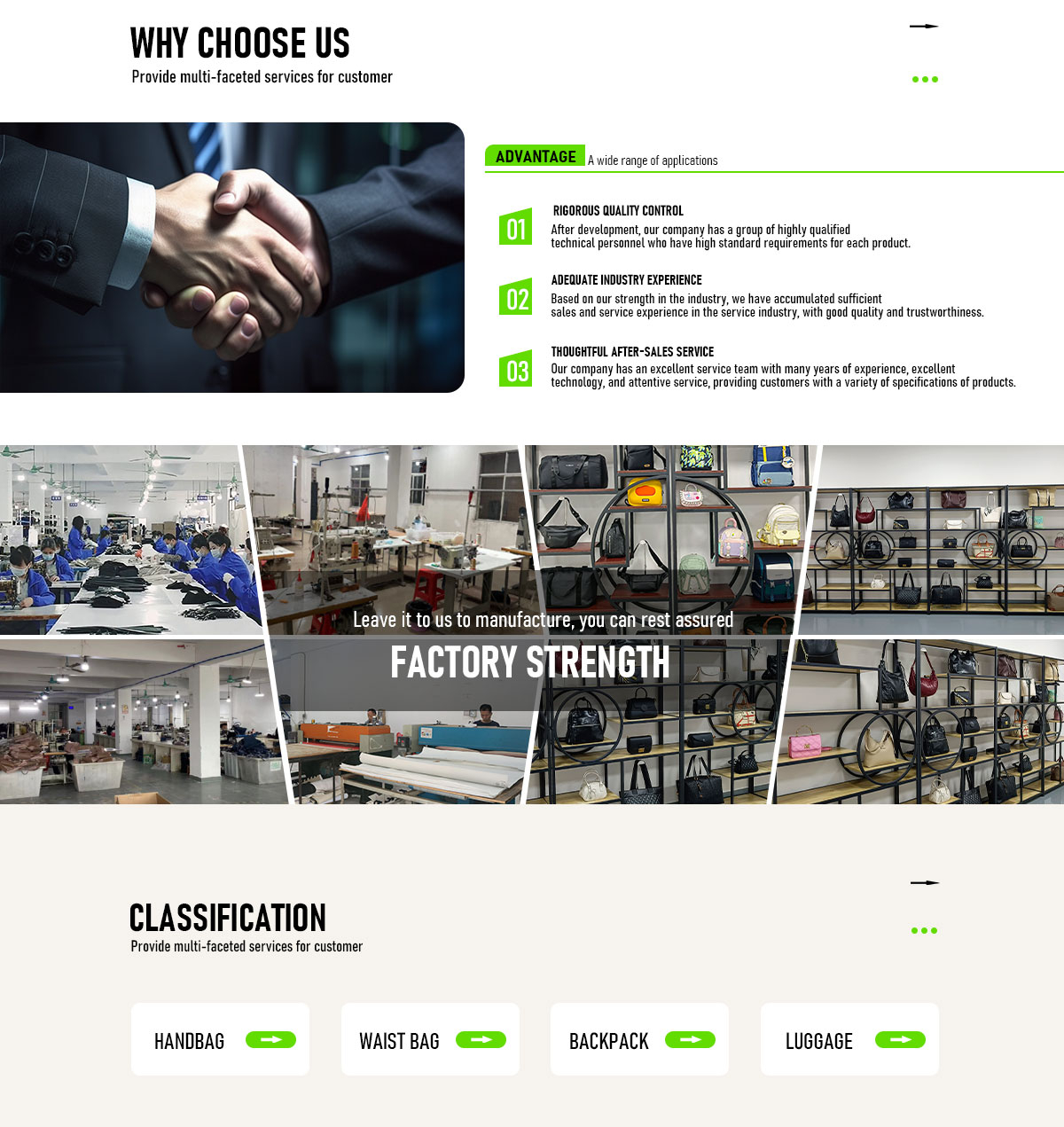 Productos principales:Bolso, mochila, bolsa de lona, bolsa de cintura, equipaje